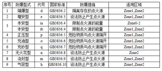 3.防爆類型在風險場所的適用性表4防爆類型在風險場所的適用性