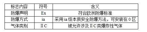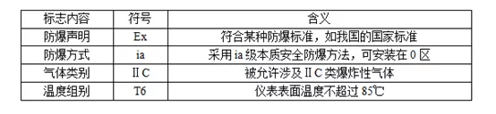 注 : 該標志中無溫度組別項 , 闡明該儀表不與爆炸性氣體直接接觸