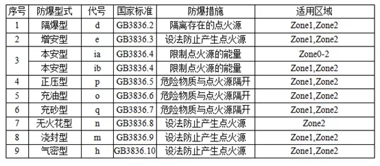 1.根據防爆設備設備、運用場所的危險區域來選擇設備的防爆型式: