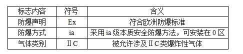 注:該標志中無溫度組別項,說明該設備不與爆炸性氣體直接接觸